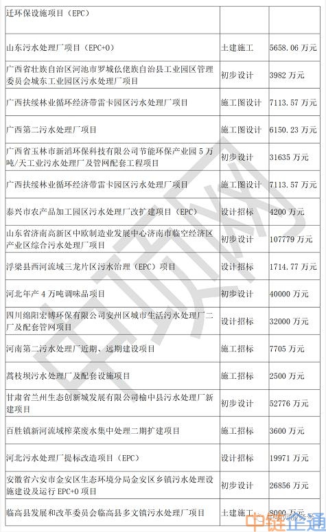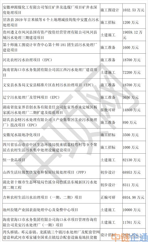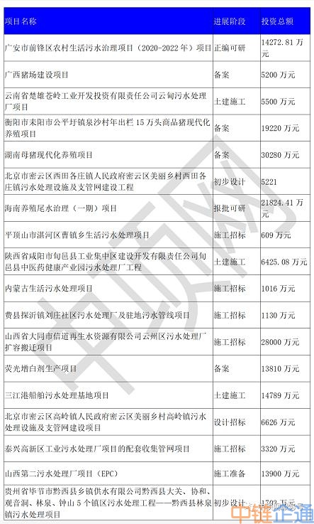 以下为中项网发布的2020年11月份全国拟建在建生活污水+工业污水项目: