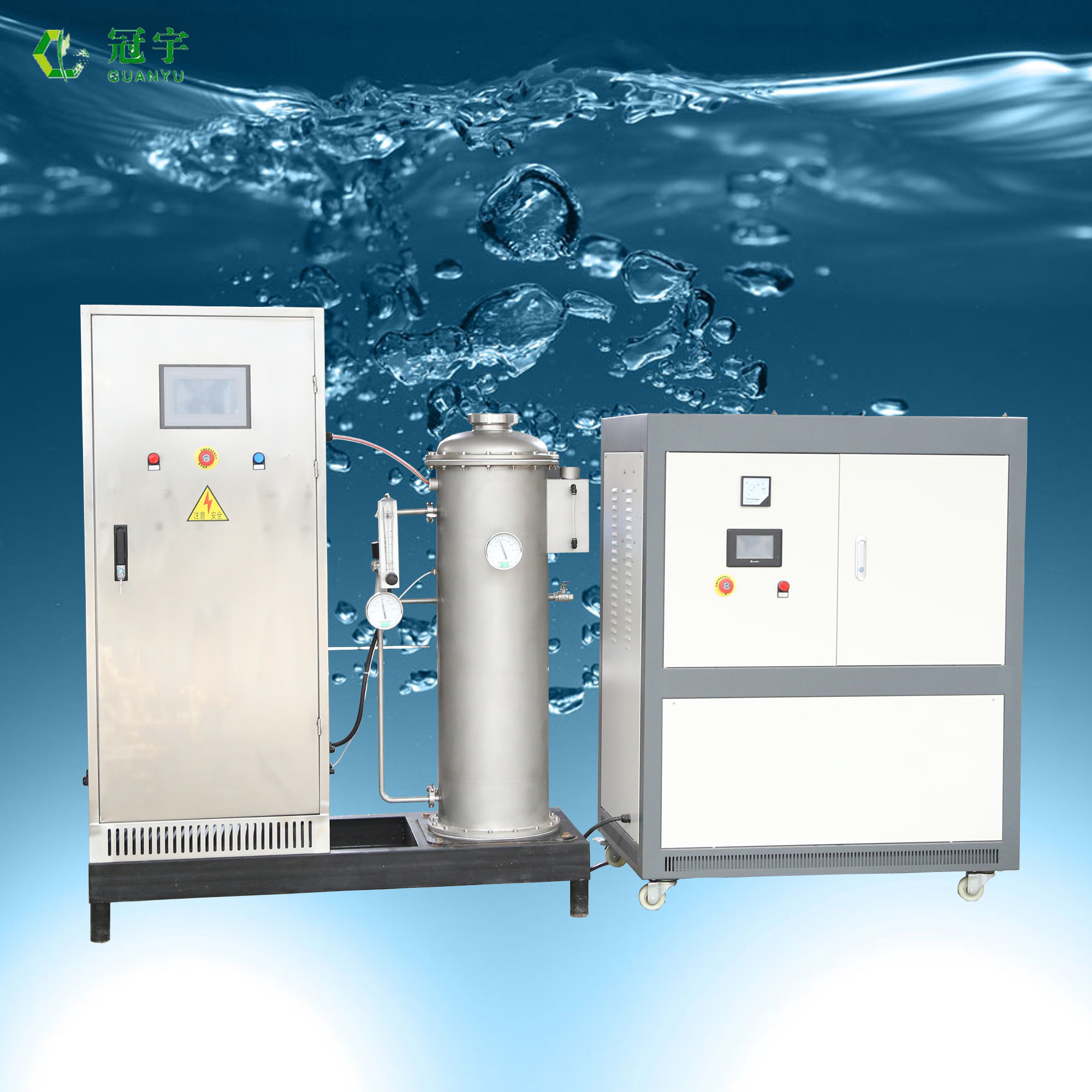 3、按冷却方式划分,有水冷型和风冷型。臭氧发生器工作时会产生大量的热能,需要冷却,否则臭氧会因高温而边产生边分解。水冷型发生器冷却效果好,工作稳定,臭氧无衰减,并能长时间连续工作,但结构复杂,成本稍高。风冷型冷却效果不够理想,臭氧衰减明显。总体性能稳定的高性能臭氧发生器通常都是水冷式的。风冷一般只用于臭氧产量较小的中低档臭氧发生器。在选用发生器时,应尽量选用水冷型的。