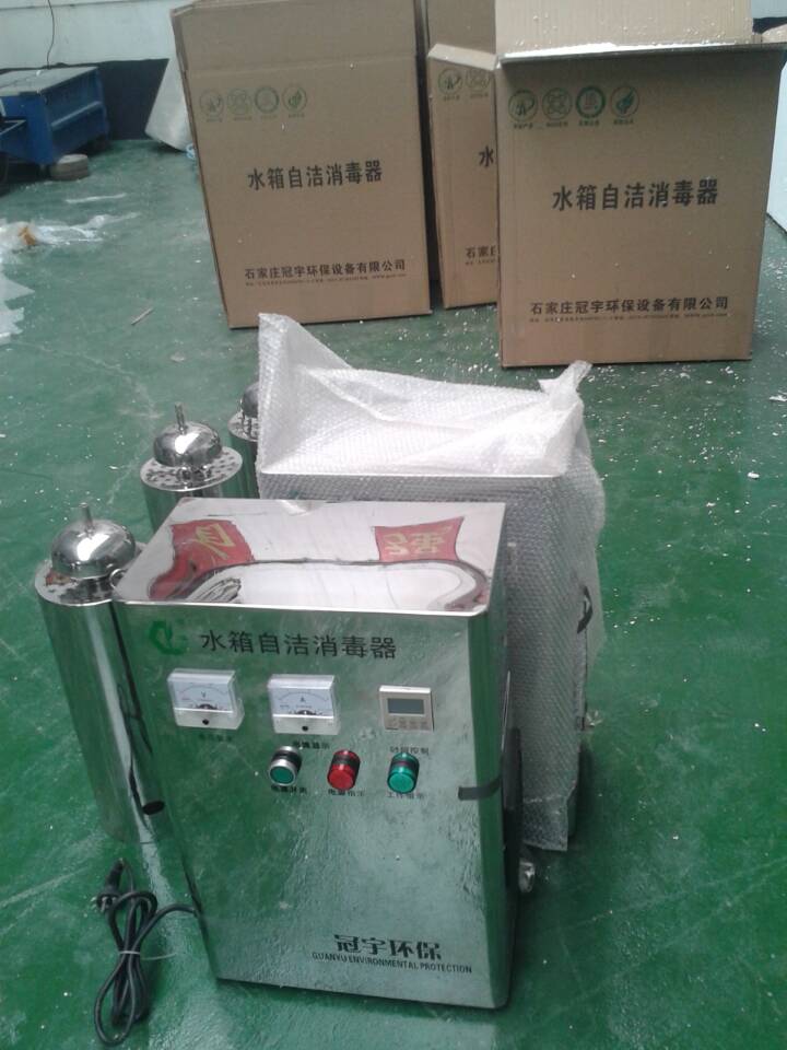 冠宇牌水箱自洁消毒器是我公司冠宇环保设备有限公司生产的消毒设备,其优点和特点是一般厂家无法比拟的,该产品把臭氧制取技术、高氧化技术、自动控制、射流曝气、罐、臭氧混合泵、压差混合技术融为一体、注册资金高达300万安全可靠