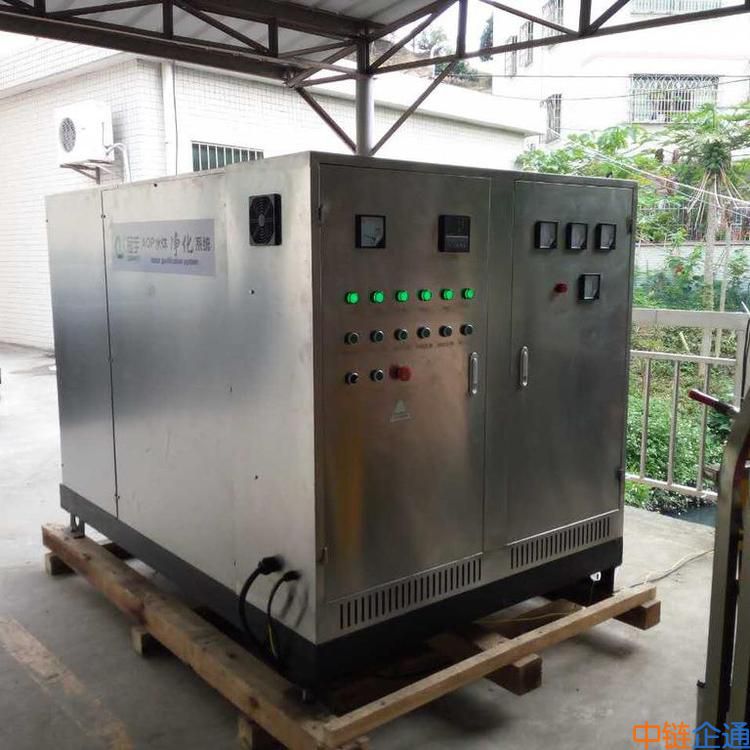 AOP设备特点及优势本设备是集纳米光催化系统,制氧系统,臭氧系统,制冷系统,内循环系统,高效汽水混合系统,智能控制系统为一体的集成组合设备。只需接通电源和被处理水进,出管道即可。特点优势如下:安装方便,节省占地面积。可靠的冷却系统,:设备的冷却系统,气源系统温度可控,可调臭氧产出效率高,浓度高:臭氧浓度大于120mg/L。高效混合,微米级气泡,溶解度高,溶质的扩散系数和分散相储存量大高强特制紫外线技术,瞬间产生氢氧自由基。纳米高效催化,有机物瞬间分解,氧化反应快速,高效,无选择性,被处理水在进,出设备的瞬间实现对有机质的快速氧化,出水COD达到国家一级排放新标准或循环水回用的要求可将有机物彻底降解为二氧化碳,水,不会产生二次污染。
