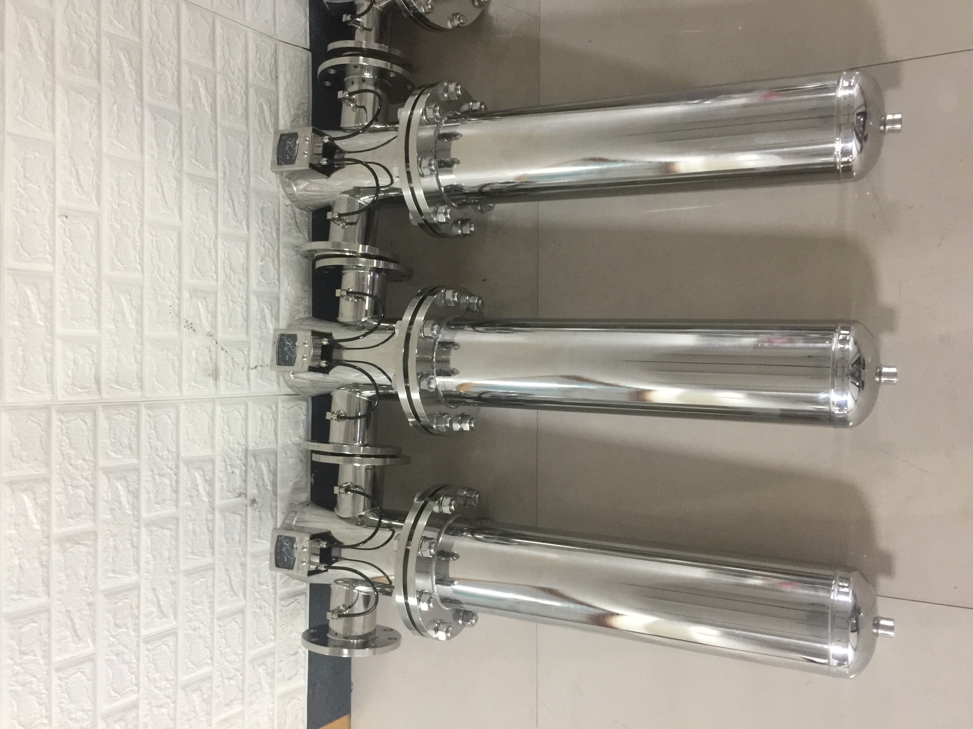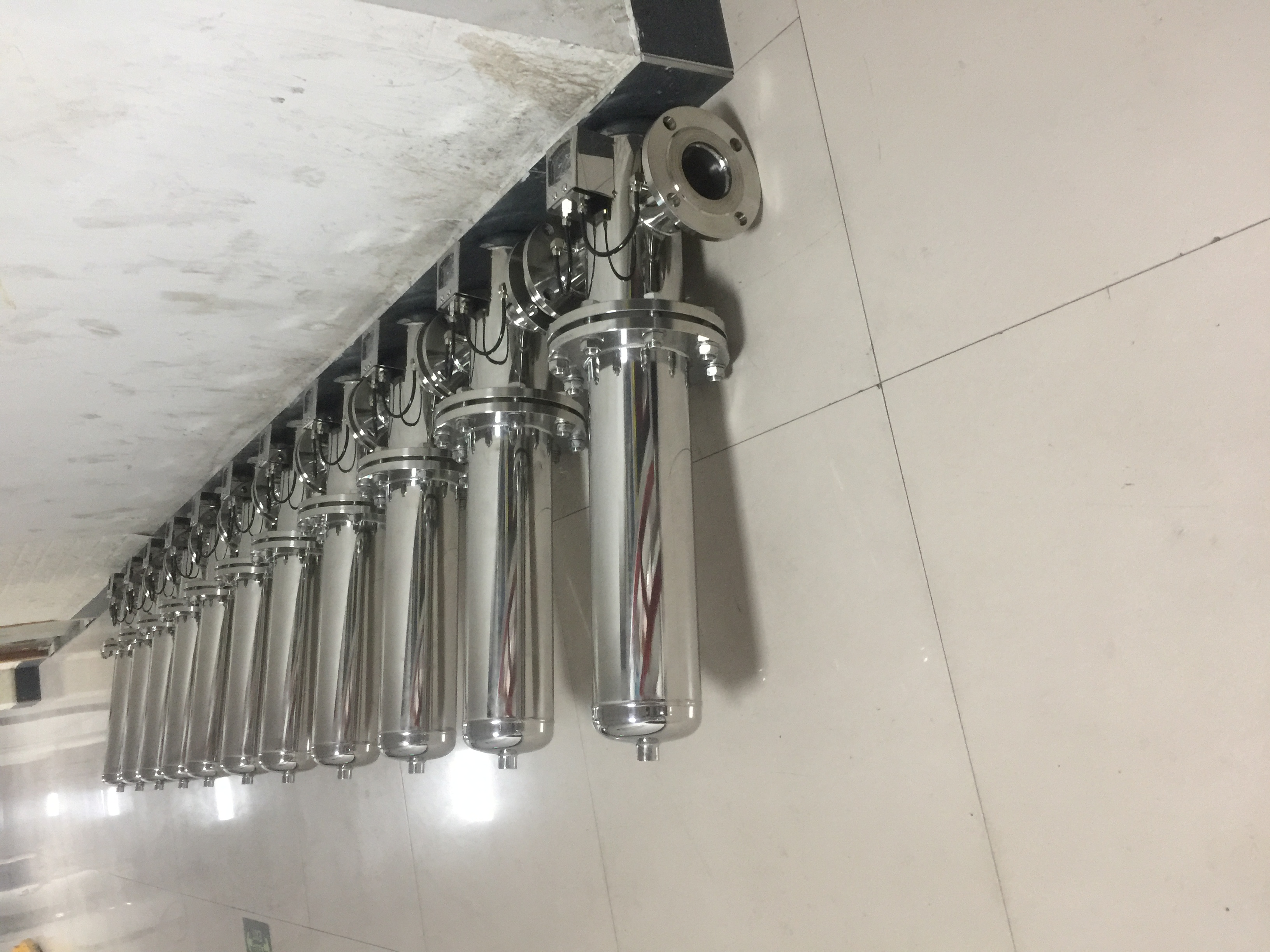 (1)除菌过滤器一般采用十字悬挂式,水平进出。多芯过滤器可设计成落地式。