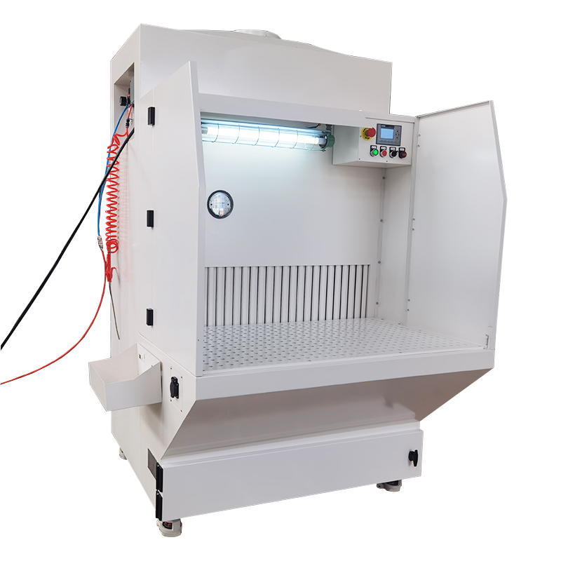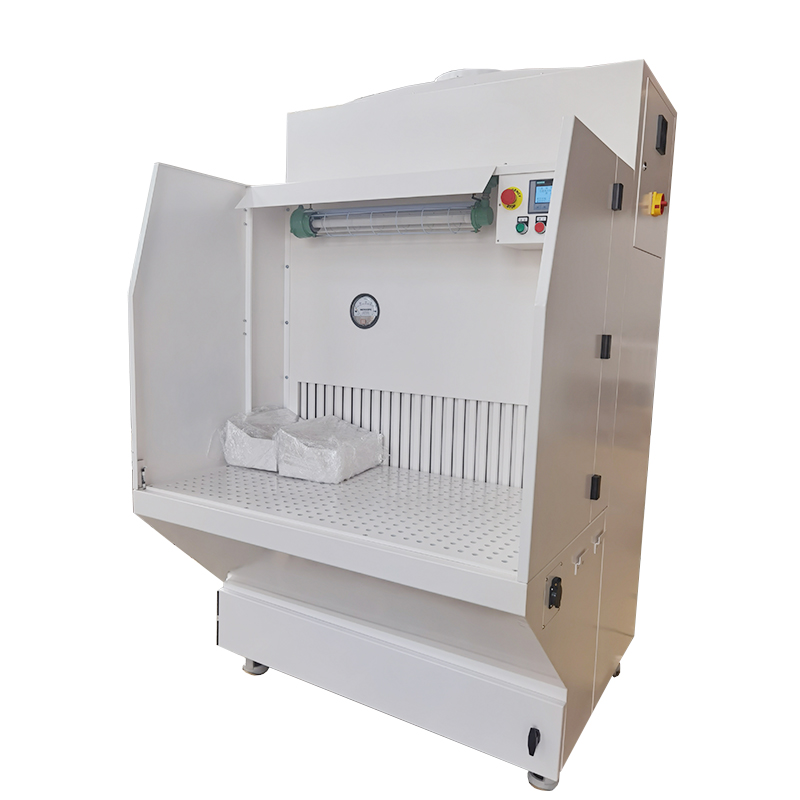 济南美蓝环保生产的打磨除尘工作台采用三面包围式设计,对粉尘进行有效控制,工作台面为吸尘口,可在粉尘产生源头直接进行高效收集,及时阻止粉尘的扩散,粉尘通过精度高达0.3μm的高效阻燃滤芯过滤净化后,干净的空气直接排放在室内,保持车间空气清洁。被过滤后掉的粉尘收集在集尘抽屉内,防止二次污染。