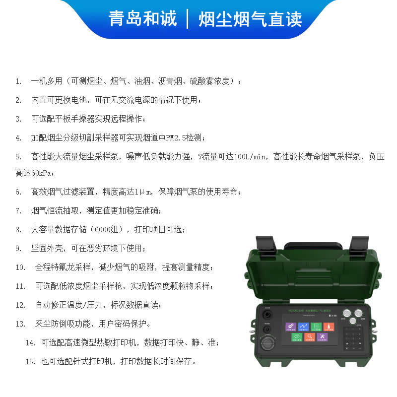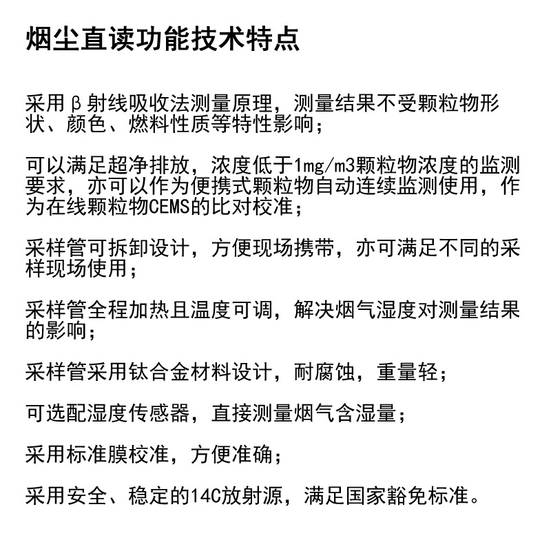 n 支持烟尘采样与烟尘直读双功能(选配崂应1089K型β射线烟尘检测器,实现烟尘直读功能)