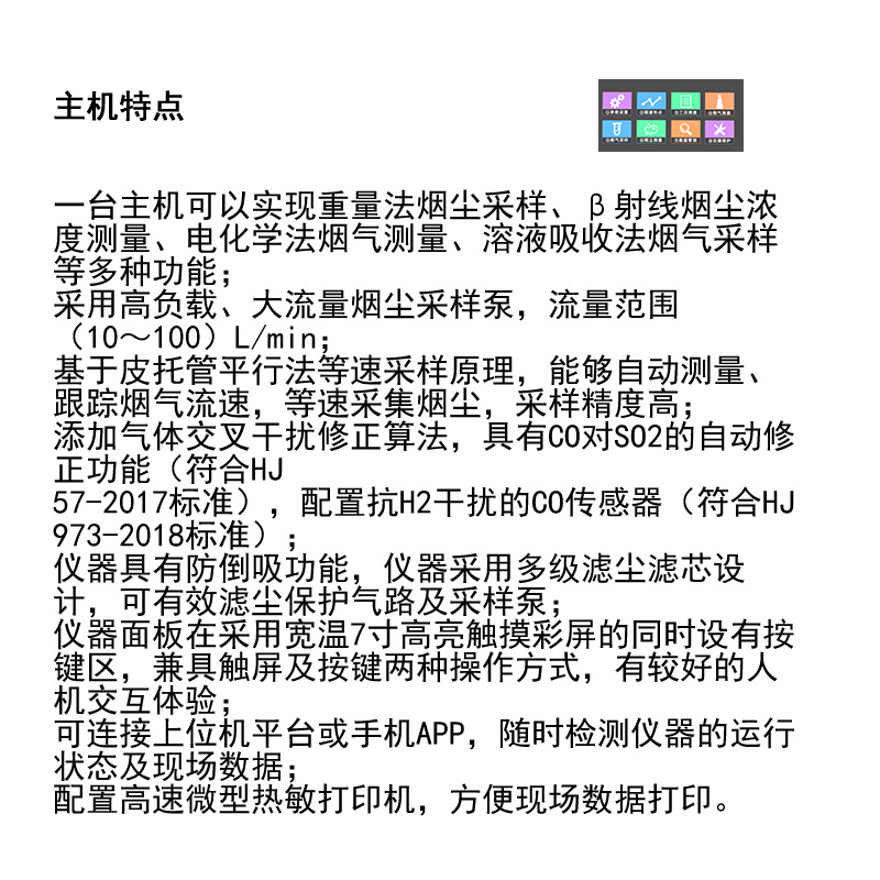 n 具有防倒吸功能,可防止采样结束后采集的烟尘被倒吸出来,确保采样数据的准确性