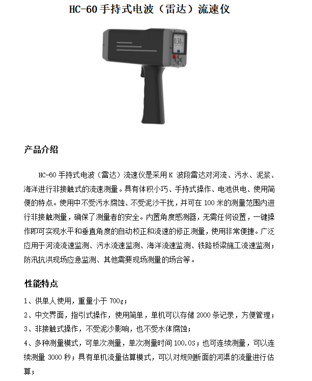 | 名称: | HC-60手持式电波雷达流速仪 |