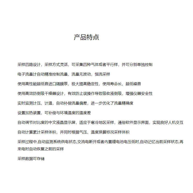 采样四路设计,采样方式灵活,可采集四种气体或者平行样,并可分别单独控制