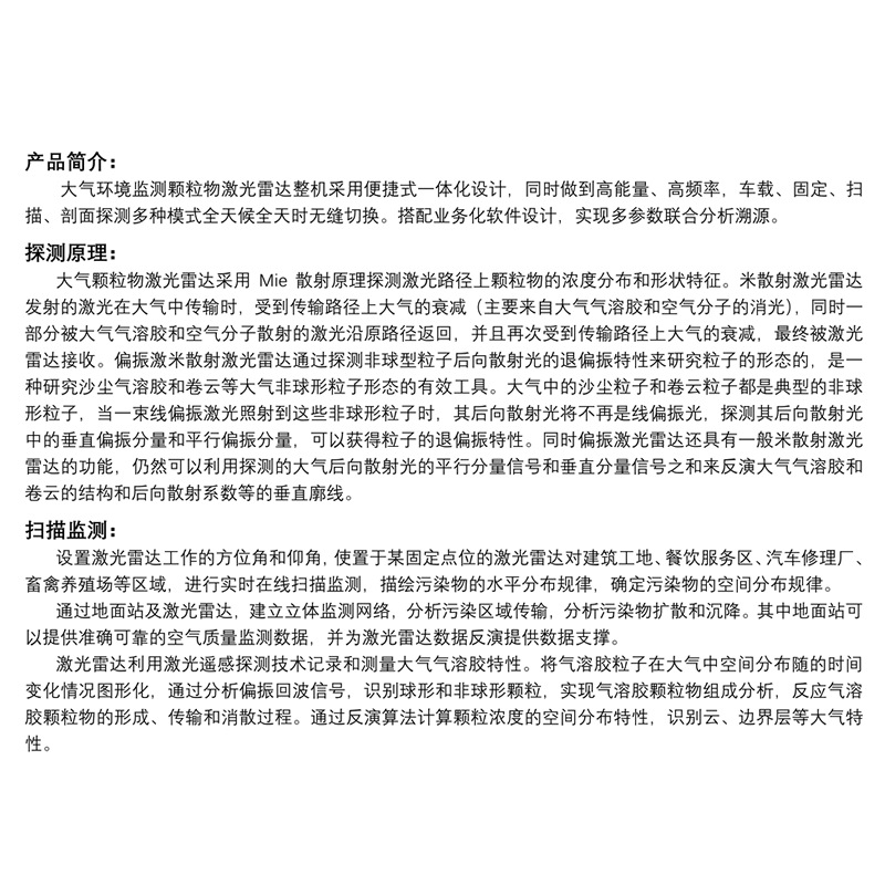 中链企通环保网为您提供了大气气溶胶激光雷达灰霾沙尘暴环境监测污染源连续探测扫描系统等产品,这里云集了众多的供应商,采购商,制造商。欲了解更多大气气溶胶激光雷达灰霾沙尘暴环境监测污染源连续探测扫描系统信息,请访问中链企通环保网!