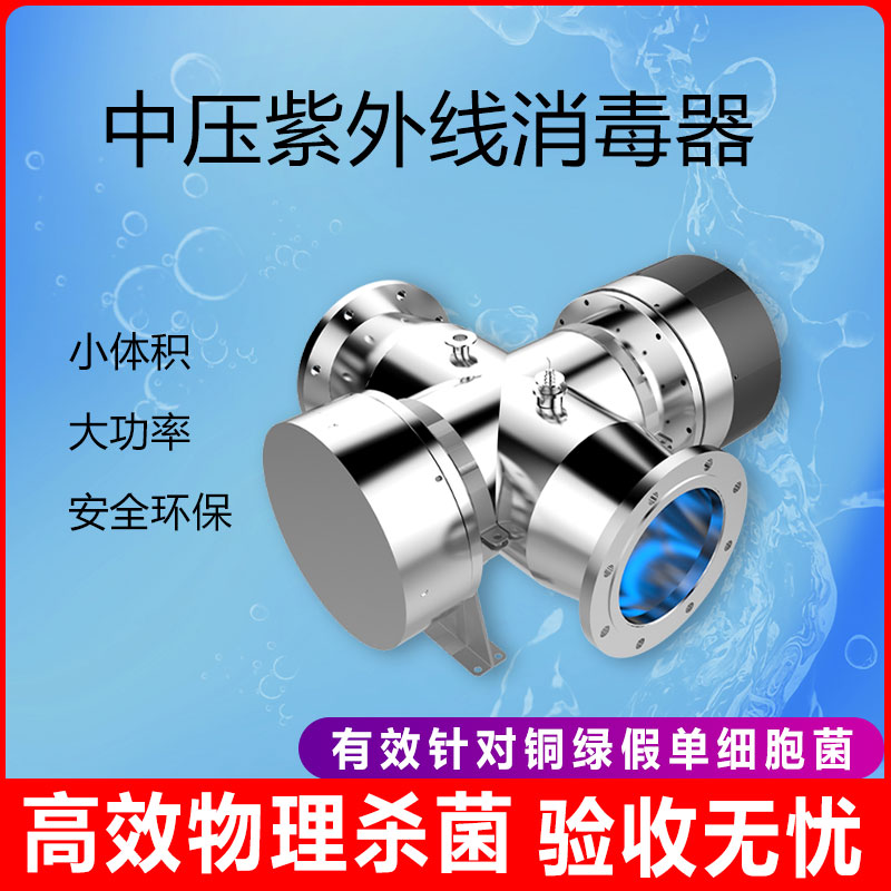 中压紫外线消毒器能 保证杀菌效果和出水水质,是一种持久的, 有效的杀菌技术,没有复活反应,没有菌群反弹现象,确保完全的消毒效果和水质的安全。