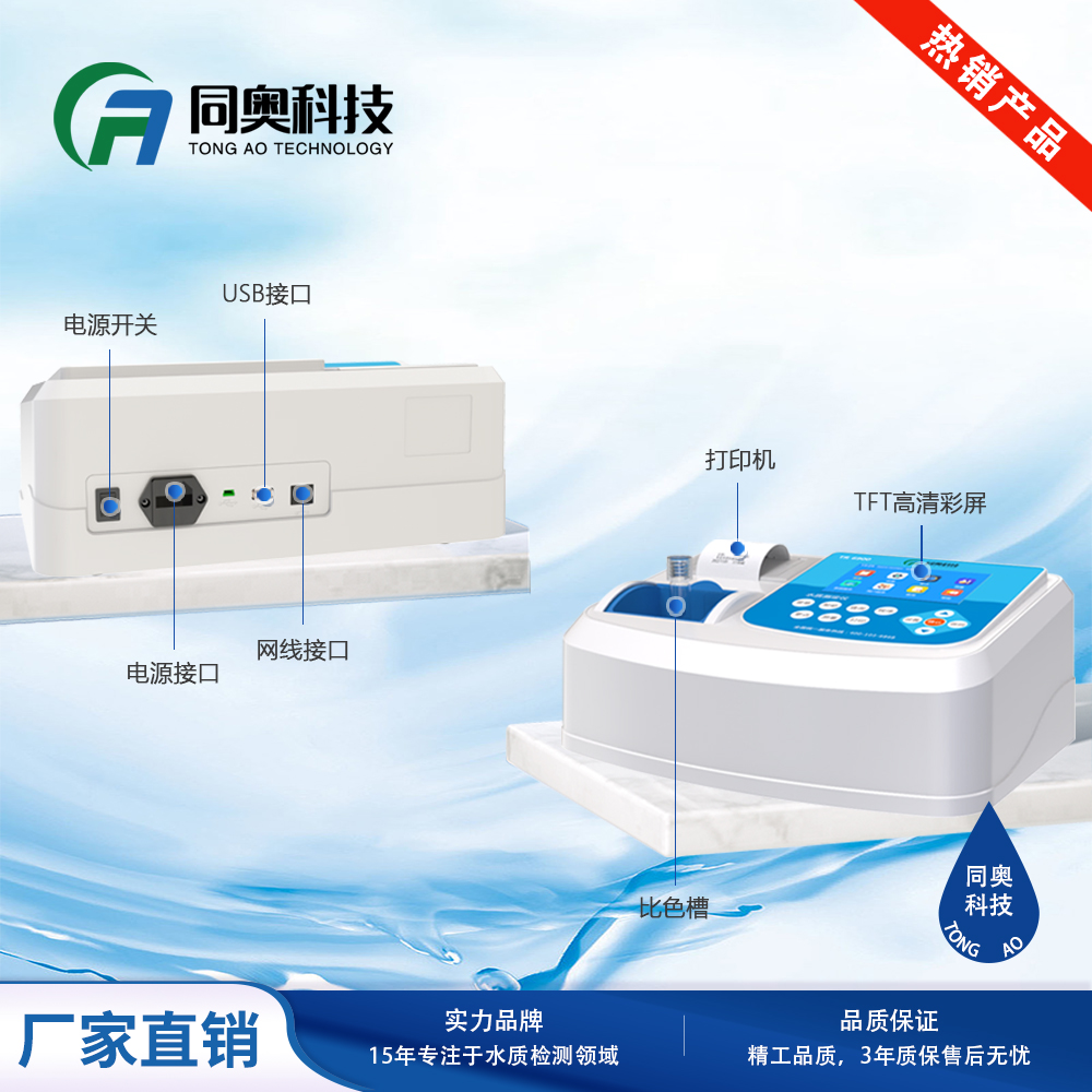 同奥科技 总磷检测仪快速分析仪 TR-6900P仪器可快速测定水中总磷值,集成了同奥水质分析领域成熟技术,使整个分析系统更加完善,操作更加简单、快速,检测结果更加稳定可靠。仪器显示界面采用大屏液晶屏显示,按键操作,数据直读,操作简单省时;检测范围广,可拓展数十种检测参数,根据需求定制,达到资源利用优化,智能操作程序,可选择标准测量或连续测量模式,在快速性和准确性间自由选择,引导用户轻松完成操作。同奥科技 总磷检测仪快速分析仪 TR-6900P广泛应用于应急监测、工业废水、生活污水、污水处理、医药化工、食品、饮品、纺织印染、电镀、造纸、石油冶金、河流治理、科研单位、院校等领域。