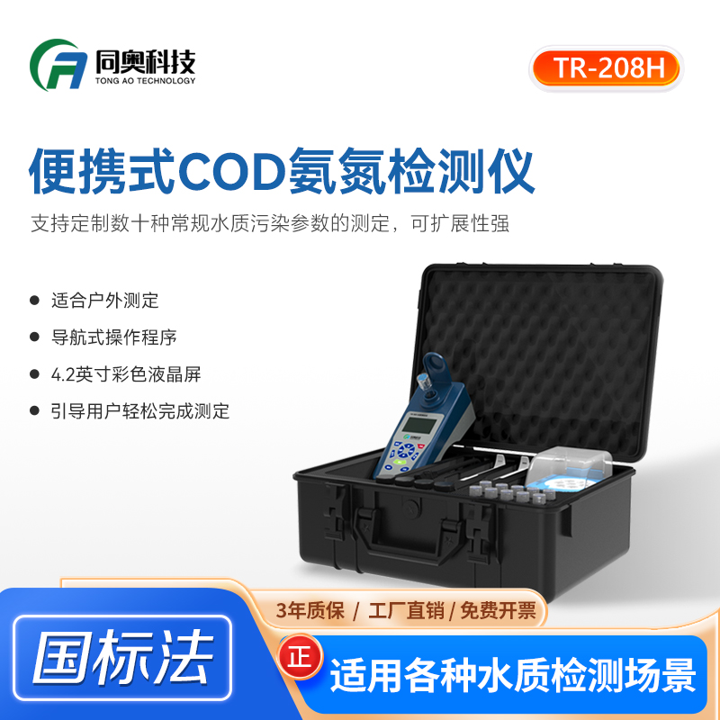 同奥 便携式COD水质检测仪TR-208H仪器可快速测定水中COD、氨氮值,集成了同奥水质分析领域成熟技术,使整个分析系统更加完善,操作更加简单、快速,结果稳定可靠。同奥 便携式COD水质检测仪TR-208H广泛应用于应急监测、生活污水、工业污水、污水处理、医药化工、食品、饮品、纺织印染、电镀、造纸、石油冶金、河流治理、科研单位、院校等领域。