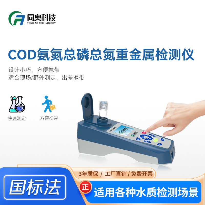 同奥 便携式多参数COD重金属检测仪TR-408ZH仪器可快速测定水中COD、氨氮、总磷、总氮、总铬、六价铬、铜、镍、锌、铁等,集成了同奥水质分析领域成熟技术,使整个分析系统更加完善,操作更加简单、快速,检测结果更加稳定可靠。同奥 便携式多参数COD重金属检测仪TR-408ZH广泛应用于应急监测、工业废水、生活污水、污水处理、医药化工、食品、饮品、纺织印染、电镀、造纸、石油冶金、河流治理、科研单位、院校等领域。