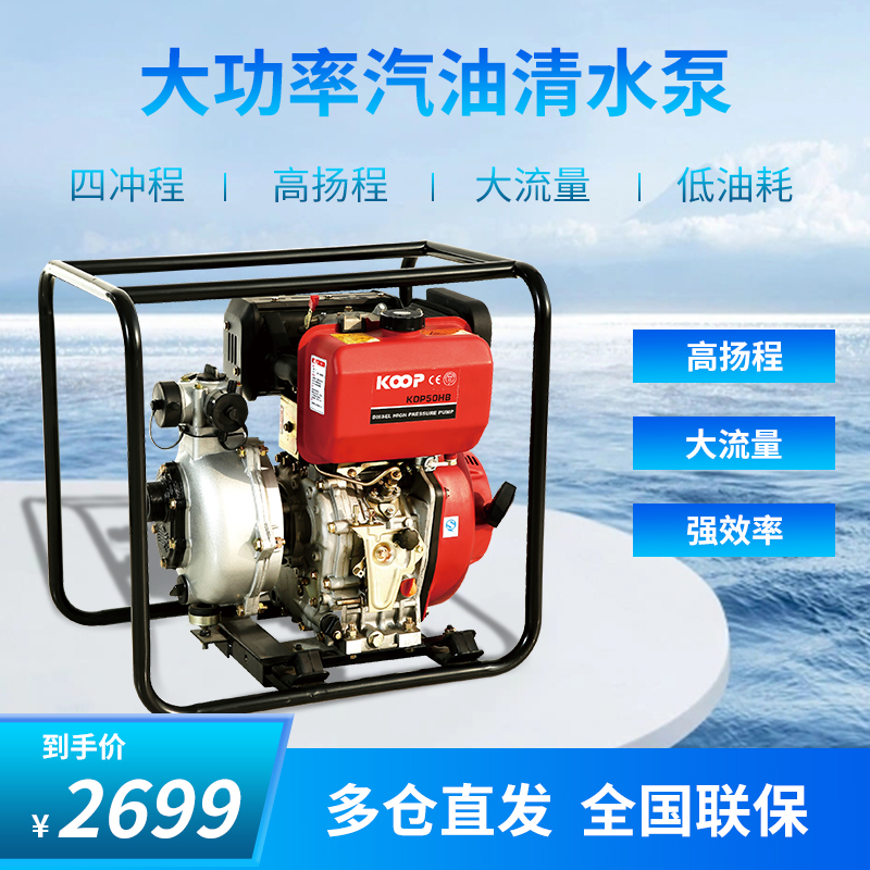 凯米尔汽油机水泵农用高压灌溉高扬程高山消防清水泵汽油抽水