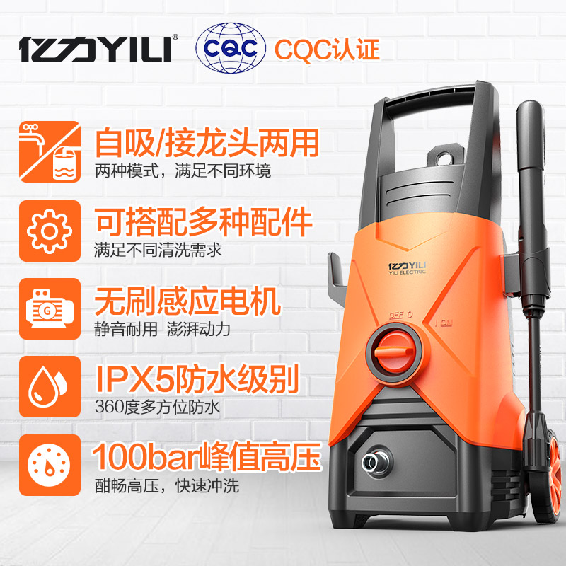 亿力家用感应电机洗车机洗车器高压清洗机洗车水枪YLQ4471G自动版