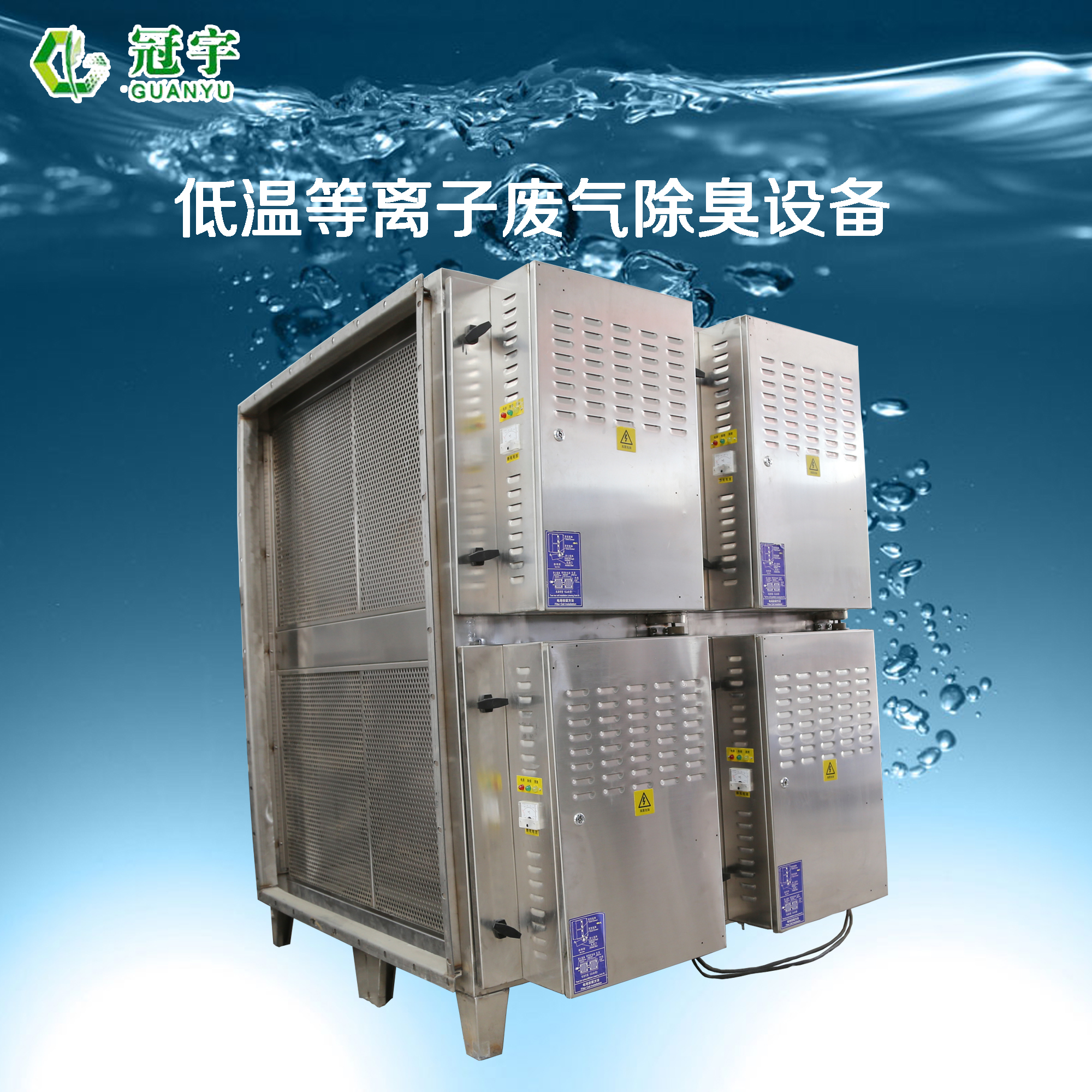 冠宇生产的低温等离子体工业废气除臭设备。是通过高频高压电场产生的低温等离子体,在放电过程中,电子从电场中获得能量,通过非弹性碰撞将能量转化为污染物分子的内能或动能,这些获得能量的分子被激发或拉生电离形成活性基团,同时空气中的氧气和水分子在高能电子的作用下也可产生大量的新生态氢、活性氧和羟基氧等活性基团,这些活性基团相互碰撞后便引发了一系列复杂的物理、化学反应。从等离子体的活性基团组成可以看出,等离子体内部富含极高化学活性的粒子,如电子、离子、自由基和激发态分子等。废气中的污染物质与这些具有较高能量活性基团发生反应, 终转化为CO2和H2O等物质,从而达到净化废气的目的。