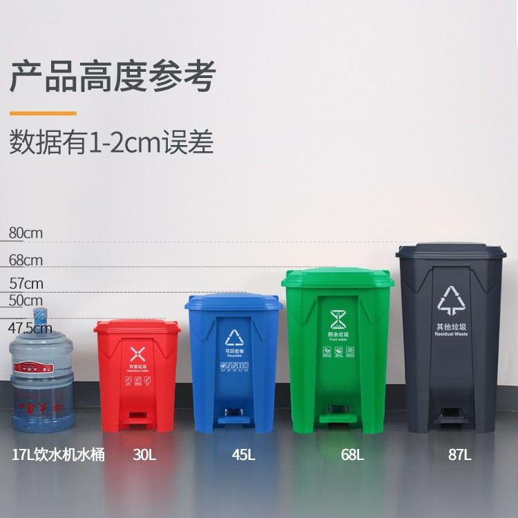| 尺寸: | 20L脚踏桶分类标、30L脚踏桶分类标、45L脚踏桶分类标、68L脚踏桶分类标、87L脚踏桶分类标 |