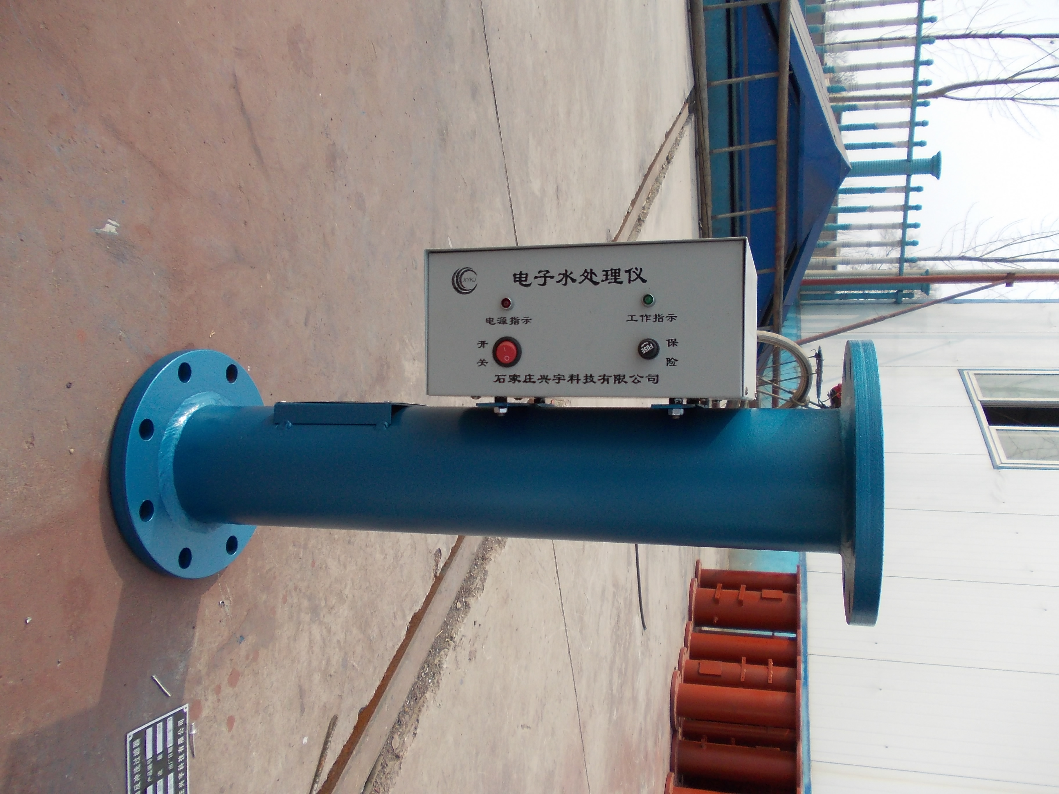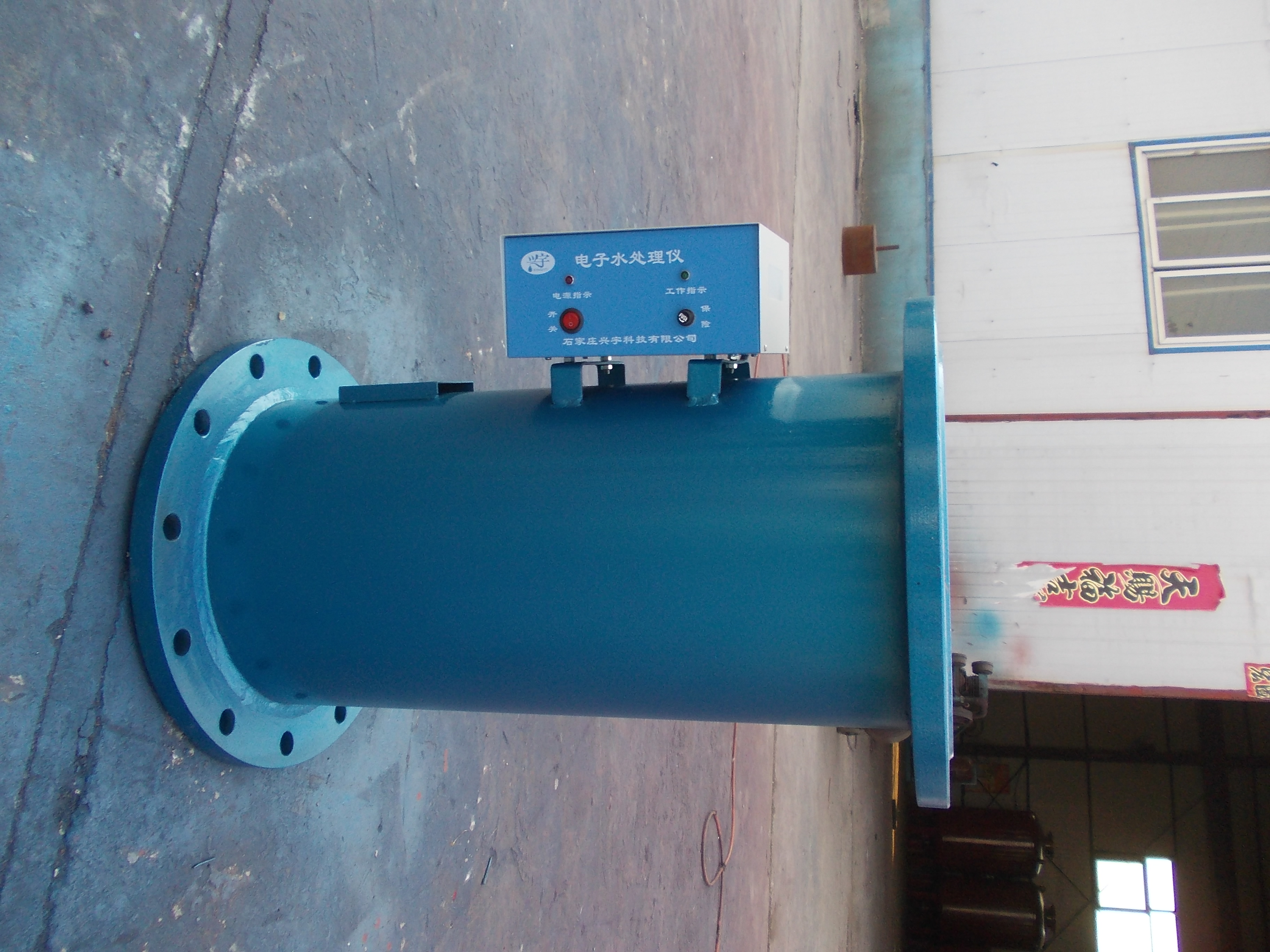 辅机:其壳体为阴极,由钢管制成。壳体中心装一根金属阳极,当水流经金属电极与壳体之间的环形空间时,辅机将变频的高频电能作用在流经它的水上面。