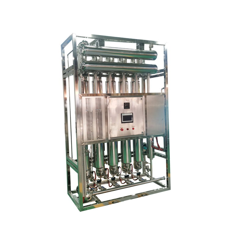 品简介 列管多效蒸馏水机是冠宇公司依靠公司自身综合实力,结合芬兰、美国、意大利等国内外先进技术,并与大连理工大学国内 汽学专家林载祁教授(国内多效蒸馆水机发明人)同力合作、研发生产的高科技产品