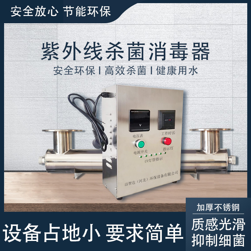 管式紫外线消毒器主要是利用波长在225纳米—275纳米的紫外线对微生物进行杀菌作用从而净化水质的设备,该设备一般选用不锈钢材质制造,当水流经过管式紫外线消毒器时,紫外线灯照射,从而将水中的细菌、病毒等微生物进行处理,处理效果可以达到99.99%。 紫外线消毒器二、管式紫外线消毒器特点1、紫外线消毒器