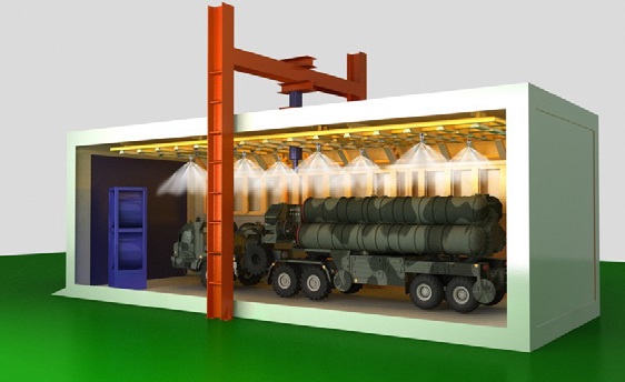 2)战场环境模拟系统可逼真的实现战场氛围的营造,如战场特有的声音、火光、气味、烟雾以及人员伤亡、残垣等场景,有助于提高部队遂行任务的的能力;