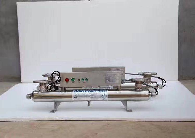 消毒器设有进出水管、泄水管、报警系统、法兰式接口、在消毒器不便安放泄水管时,也可以在与消毒器等同处的连接管路上安装。根据用户要求可配备取样管、紫外线强度监测仪、运行时间计时器、不锈钢支架等。装备新灯管的我单位产品,测得的紫外线辐照剂量大于12000μW·S/cm。(应充水),正常工作的消毒器测得的紫外线辐照剂量大于9000μW·S/cm。