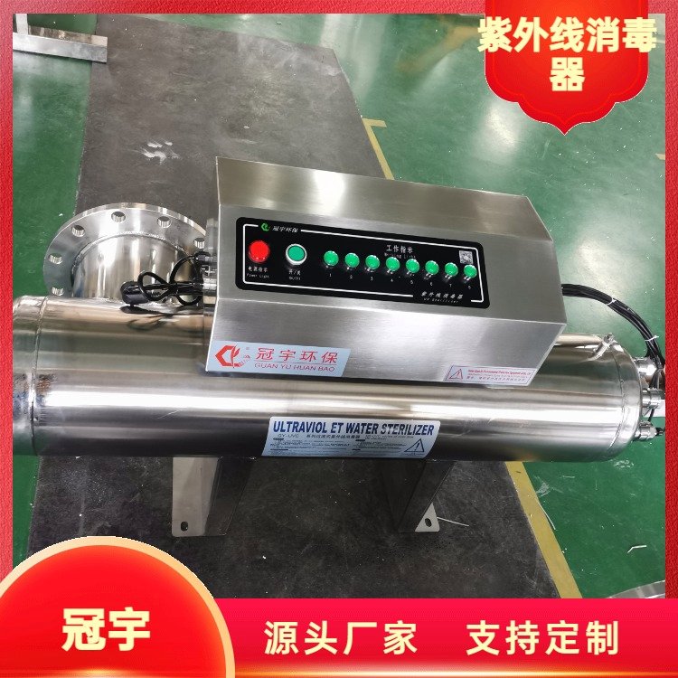 冠宇紫外线消毒器集光学、微生物学、机械、化学、电子、流体力学等综合科学为一体。采用进口及优质国产的高效率、高强度和长寿命的UV-C紫外光发生装置所产生的UV-C紫外光照射流水。当水中的细菌、病毒等受到足剂量的UV-C紫外光(波长253.7nm)照射后。其细胞DNA及细胞结构被破坏,细胞再生无法进行