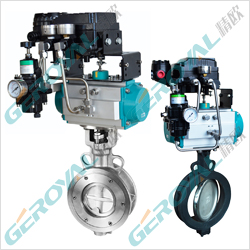 GEROYAL公司的DSHT气动调节蝶阀是由采用引进型气动执行器与三偏心密封蝶阀阀体组成。气动调节蝶阀具有结构简单紧凑,加工方便,易制成大口径,气动调节蝶阀具有自清洗作用,阻力系数小,流通能力大。外加配阀门定位器,输入控制信号(4-20mADC)及0.4-0.7MPa的气源即可控制运转。气动调节蝶阀适用于悬浮颗粒的流体及浓、浊浆状流体的调节。干净介质可选用阀板加软密封(橡胶圈、四氟圈)来减少泄漏(可达零泄露),高温高压工况可选用三偏心硬密封阀体。气动调节蝶阀是自动化控制系统中调节流量和截断流体的更佳装置。因此气动调节蝶阀被广泛地应用到介质温度≤550℃的冶金、电力、石油、化工、空气、煤气、可燃气体以及给排水等腐蚀性介质的管道上。