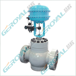 GEROYAL公司生产的气动高压调节阀是专为高压系统设计的一种特殊阀门。与气动或电动〔配用电-气转换器〕调节仪表等配合,用于化工、石油、电力等工业部门经营过程的自动调节和远程控制。气动高压调节阀由气动薄膜执行机构和高压调节阀两部分组成。气动高压调节阀的结构型式为高压二级笼式结构或者轴流迷宫式结构,可用于高压差条件下的阀芯,头部渗氮或镶以硬质合金,以抗高压差情况下的冲刷和气蚀,提高使用寿命。由于压差高,介质对阀芯不平衡力较大,设计时已选用钢度较大的执行机构,一般都配用阀门定位器。气动高压调节阀的动作,来源于信号压力在薄膜上产生的推力,使推杆推动阀芯作相应的移动,既调节阀行程。行程的变化,使阀的流通面积变化,来调节压力、温度、流量和液位等工艺参数。