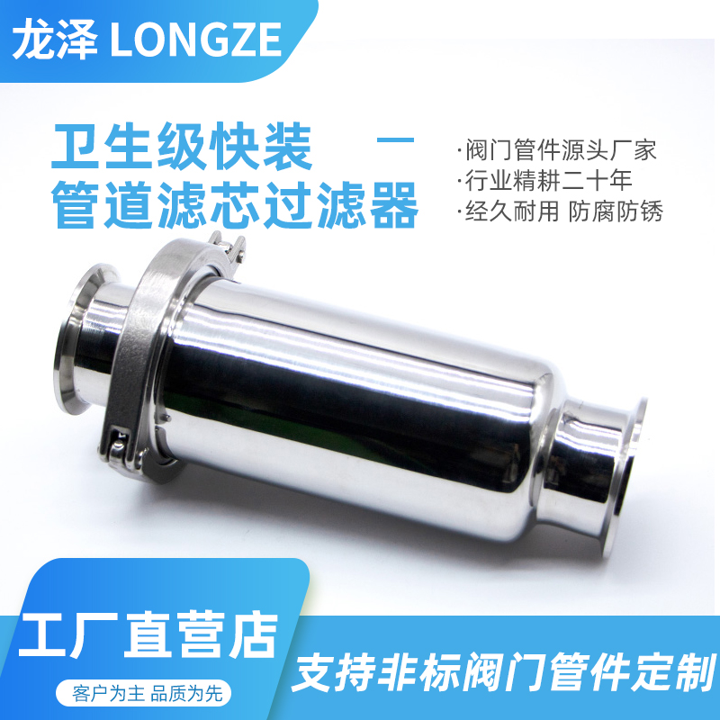 304/316L不锈钢快装管道过滤器卫生级卡箍式卡盘快接直通过滤器