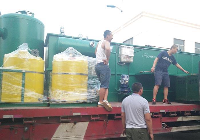 (3)隔油沉淀调节池中的污水用泵打到气浮机中,在打入的管道中加入1#药和2#药,并通过管道反应器混合均匀。1#药和2#药的加入使废水中不能自然沉降的颗粒形成絮凝体,并通过气浮机去除水中絮凝体和油污,浮渣通过螺旋输送器进入带式压滤机机中脱水。