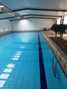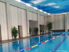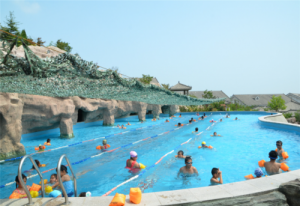 游泳池为室外景观性游泳池,造型别意,设置有跌水、汀步、涌泡、瀑布等水景造型,并结合酒店仿假山景观。游泳池基本技术参数如下: