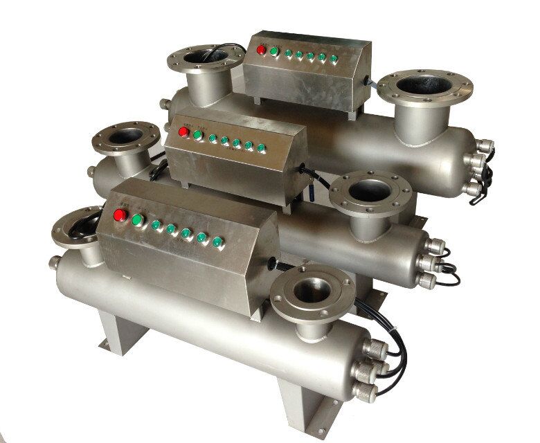 紫外线杀菌的杀菌原理是利用紫外线光子的能量破坏水体中的各种病毒,细菌以及其它致病体的DNA的结构。主要是使DNA中的各种结构键断裂或发生光化学聚合反应,例如使DNA中THYMINE二聚,从而使各种病毒,细菌以及其它致病体失去复制繁殖能力,达到灭菌的效果。本紫外线消毒系统可根据水位的变化,自动关闭处于水位之上的灯管,防止灯管在无水的情况下,长时间点亮而引起不必要的损坏,也为在低水位时,达到相同消毒效果而不必改变单只灯管功率。既节约能源,又能使辐照能量达到所需剂量。当水位上升时,便自动打开相对应的灯管。