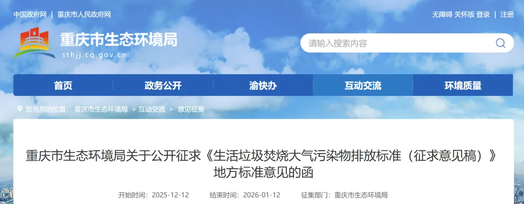 近日,重庆市《生活垃圾焚烧大气污染物排放标准 (征求意见稿)》发布。该标准规定了重庆市生活垃圾焚烧厂的大气污染物排放控制要求、监测要求以及标准的实施与监督等内容,旨在进一步加强生活垃圾焚烧过程的大气污染防控,持续改善全市环境空气质量推动行业绿色低碳高质量发展。 截至 2025 年 12 月,重庆市已建成生活垃圾焚烧发电企业 23 家...
