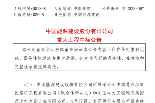 中国能源建设股份有限公司(简称:中国能建)近日公告称,所属子公司中国葛洲坝集团路桥工程有限公司(联合体牵头人)和中国电力工程顾问集团西北电力设计院有限公司,与华设设计集团股份有限公司组成联合体,中标陕西省安康市恒口示范区恒河、月河流域生态综合治理项目(EPC总承包),中标金额约为68.64亿元人民币。项目建设内容包括流域治理、交通基建...
