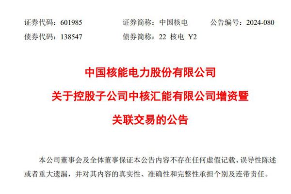 11月16日,中国核能电力股份有限公司(简称:中国核电)发布《关于控股子公司中核汇能有限公司增资暨关联交易的公告》。据该公告,中国核电控股子公司中核汇能有限公司(下称“中核汇能”)拟进行增资,采用非公开协议方式进行。 此次增资主体为中国核工业集团有限公司、中国核工业集团资本控股有限公司以及除珠海德擎混改三号股...