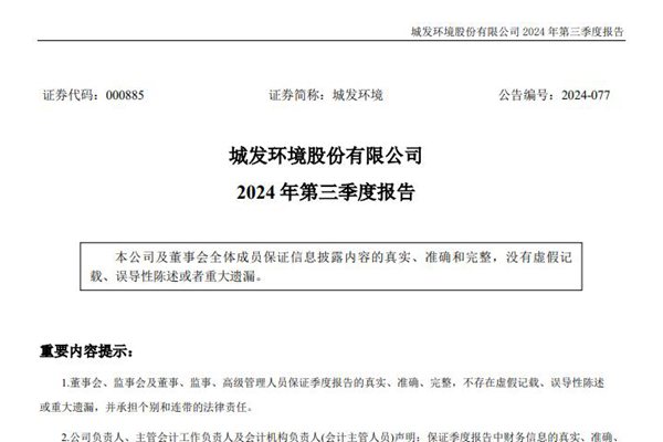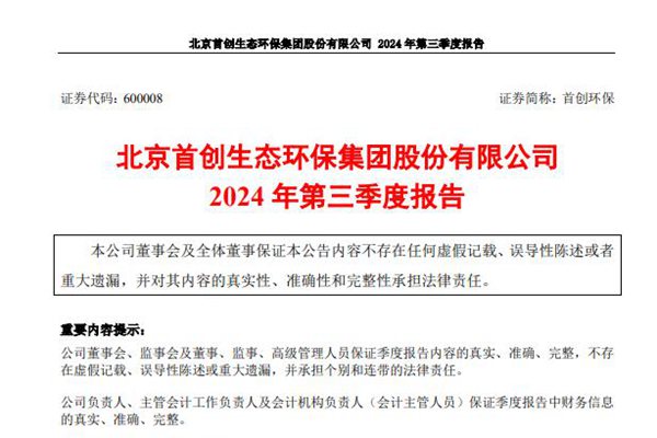 北京首创生态环保集团股份有限公司(简称:首创环保)近日发布《2024年第三季度报告》,前三季度实现营收约138.66亿元,同比减少1.88%;归属于上市公司股东的净利润约32.51亿元,同比增加154.67%;基本每股收益0.4429元,同比增加154.69%。图源:首创环保公告 从资产方面看,首创环保报告期内,期末资产总计为110...