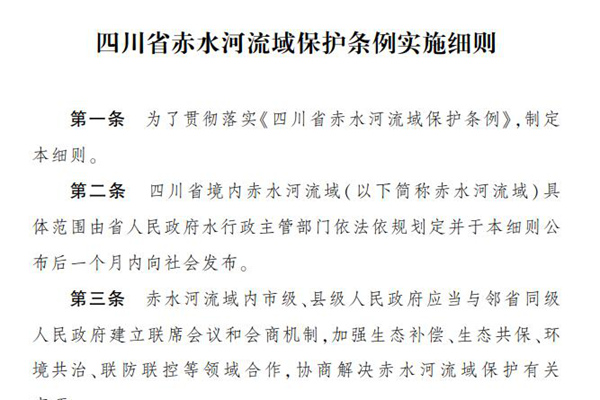 四川省人民政府 关于印发《四川省赤水河流域保护条例实施细则》的通知 川府发〔2024〕17号 泸州市人民政府,省政府各部门、各直属机构: 现将《四川省赤水河流域保护条例实施细则》印发给你们,请认真贯彻执行。 四川省人民政府 2024年9月14日...