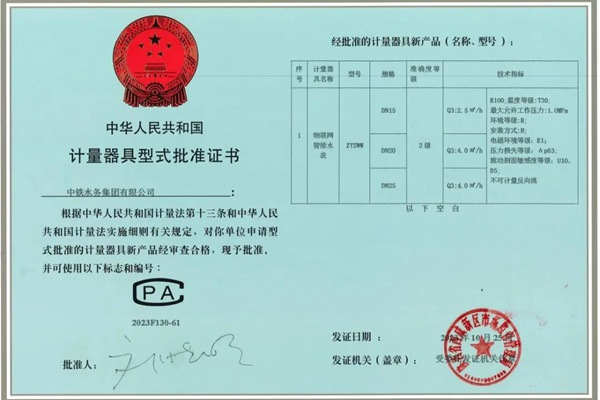 近日,从陕西省西咸新区市场监督管理局传来喜讯,中铁水务申请办理的物联网智能水表《中华人民共和国计量器具型式批准证书》(CPA)获批,意味着获批的物联网智能水表类型已具备生产资质,标志着公司水表ODM业务取得了新突破、进入了新阶段。 自开展ODM业务以来,公司领导高度重视、精心谋划、指导推进。在具体申请办理过程中,物资设备管理中心将取...