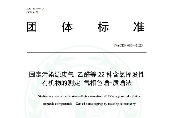 日前,根据《中华人民共和国标准化法》以及国家标准化管理委员会、民政部联合制定的《团体标准管理规定》,依据全国团体标准信息平台和《中华环保联合会团体标准管理办法(试行)》,全国团体标准《固定污染源废气 乙醛等22种含氧挥发性有机物的测定 气相色谱-质谱法》(T/ACEF 086—2023)经中华环保联合会批准于2023年9月...