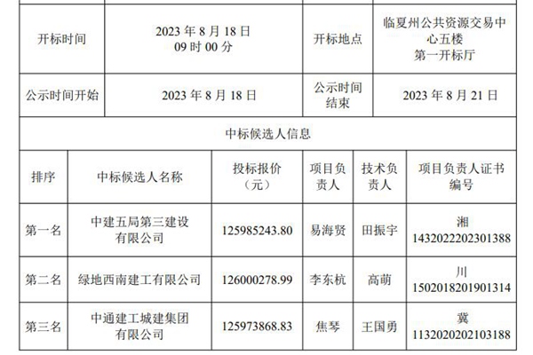 康乐县生活垃圾、餐厨垃圾、建筑垃圾、处置及资源化利用“多位一体”综合处置基地建设项目中标结果公示,中建五局第三建设有限公司中标候选人第一,预中标该项目,投标报价约为1.26亿人民币。 按照招标文件,该项目总投资为2.26亿左右,建设生活垃圾转运站,设计规模 200t/d;可回收物分拣中心,50t/d;餐厨垃圾...