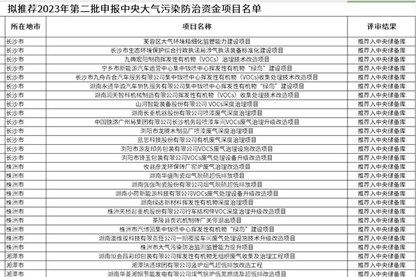湖南省生态环境厅关于拟推荐2023年第二批申报中央大气污染防治资金项目名单的公示 根据《关于印发的通知》(环办科财〔2021〕22号)有关要求,经项目单位申请、市级生态环境部门审查推荐、省级专家评审等程序,现将拟推荐2023年第二批申报中央大气污染防治资金项目名单予以公示。公示期为8月18日-8月24日。 在此期间,欢迎社会各界对公示...
