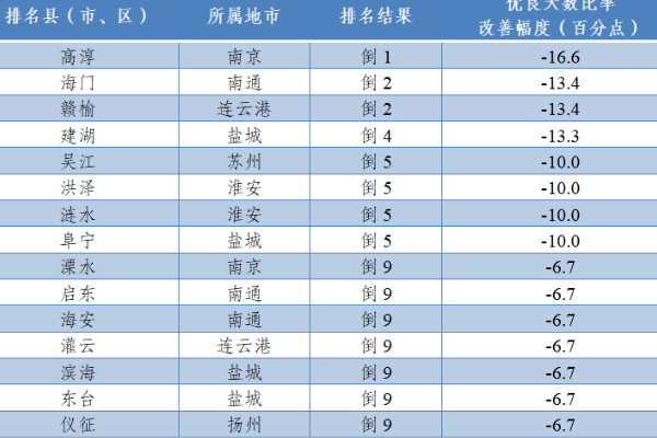 依据《江苏省县(市、区)PM2.5浓度排名规程(暂行)》及《关于公布江苏省县(市、区)省控环境空气质量监测点位的通知》(苏环办﹝2018﹞535号)规定的排名要求,对54个县(市、区)空气质量状况进行排名。 2023年6月,54个县(市、区)中 PM2.5浓度相对较好的前10位(1—10名)依次是: 溧阳(常熟、太仓...