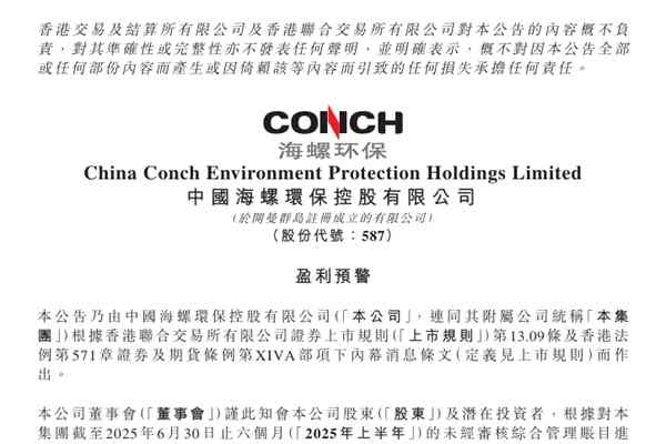 7月21日,中国海螺环保控股有限公司(简称:海螺环保)发布《盈利预警》。2025年上半年,海螺环保预计收入约为人民币7.6亿元至人民币8亿元,上年同期人民币804.01百万元;录得权益股东应占净利润约为人民币200万元至人民币800万元,上年同期人民币8214万元。 海螺环保董事会认为该预期下降乃主要由于:2025年上半年,面对行业...