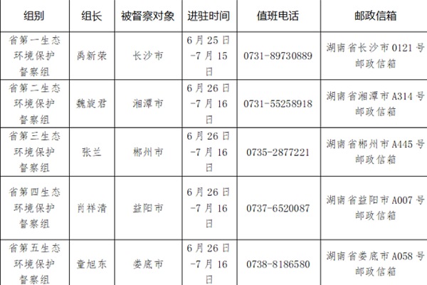 2023年6月25-26日,第二轮第一批省生态环境保护例行督察进驻动员会分别在长沙市、湘潭市、郴州市、益阳市和娄底市等5市召开,5个省生态环境保护督察组全部实现督察进驻。各督察组向社会公布了进驻期间的值班电话和邮政信箱,并公开了关于督察组作风纪律监督举报方式。 在进驻动员会上,各督察组组长指出,党的十八大以来,以习近平同志为核心的党...