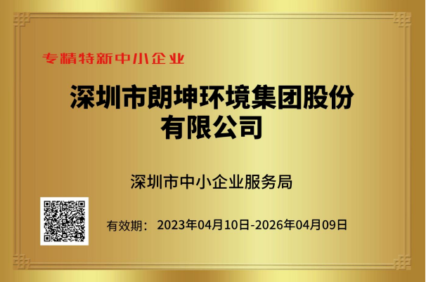 近日,深圳市中小企业服务局公布了2022年度深圳市专精特新中小企业名单。经过层层严格遴选,深圳市朗坤环境集团股份有限公司(以下简称“朗坤集团”)凭借先进的技术研发实力和出色的项目运营能力,荣获“深圳市专精特新中小企业”认定。 “专精特新”中小企业是指具有专业化、...