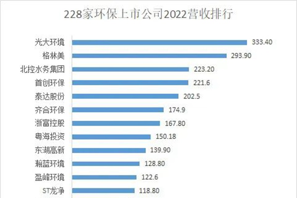一年一度业绩盘点时间到。今年,据中国水网不完全统计,共有228家环保上市公司发布了2022年业绩报告,中国水网对其营业收入、净利润与应收账款等方面的数据进行了分析统计。 2023年虽迟了些,但内容相当丰富,反映了更多产业的细节。 01 仅五成营收上涨,超六成净利下降 从营收情况来看,228家涉环保业务上市公司平均营收为30.08...