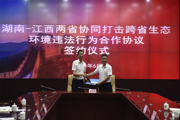 湖南、江西比邻相守、根脉相通。近年来,两省生态环境部门一直保持密切合作,签订了多个污染防治联防联控有关协议,在渌水流域协同治理、打击危险废物非法跨省转移处置、协同应对突发环境事件等方面有诸多交流协作,以通力合作促进两地环境质量改善。 为进一步深化两省生态环境执法协作、共同打击跨省环境违法犯罪行为,2023年6月13日上午,两省生态环...