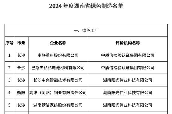 关于公布2024年度湖南省绿色制造名单的通知湘工信节能〔2024〕386号 各市州工信局、省直管试点县(市)工信部门: 为全面落实《湖南省工业绿色“十四五”发展规划》,持续完善绿色制造体系,加快推进工业绿色低碳转型和高质量发展,根据《湖南省绿色制造体系建设管理办法》(湘工信节能〔2023〕90号)的有关要求和工...