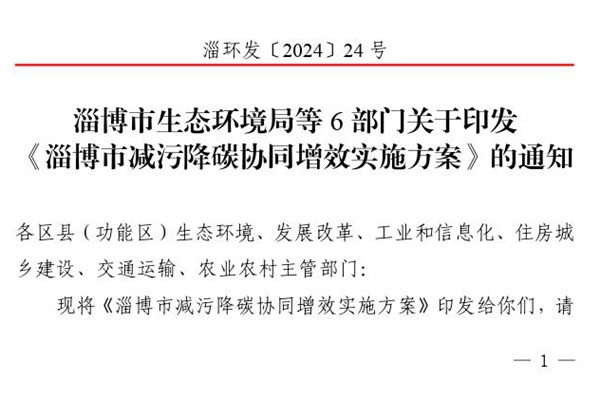 淄博市减污降碳协同增效实施方案 为深入贯彻落实党中央、国务院关于碳达峰碳中和决策部 署,协同推进减污降碳,根据生态环境部等7部门印发的《减污 降碳协同增效实施方案》和《山东省减污降碳协同增效实施方 案》,结合我市实际,制定本实施方案。 一、总体要求 以习近平新时代中国特色社会主义思想为指导,全面贯彻党 的二十大精神,深入践行习近平生...