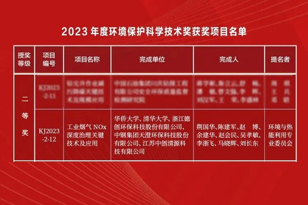 浙江德创环保科技股份有限公司深耕于节能环保领域,是一家集烟气、固废、危废、土壤处理等多个业务板块的大型节能环保综合性服务企业。近日,中国环境科学学会正式发布《2023年度环境保护科学技术奖获奖项目公告》,获奖成果共59项。其中,一等奖10项,二等奖47项,科普类奖2项。由华侨大学、清华大学等高校与浙江德创环保科技股份有限公司联合申报的...