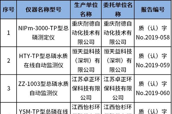 近日,中国环境监测总站发布《水质类仪器适用性检测合格名录(截至2023年12月31日)》。其中,符合新标准的总磷水质在线自动监测仪共144款,详情如下:...